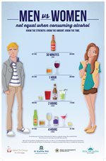 ALCOHOL AND THE BODYFor those who choose to drink, alcohol affects bodies differently. This poster was designed to highlight the different effects on men and women when consuming alcohol. Be aware of the BAC by the hour.
